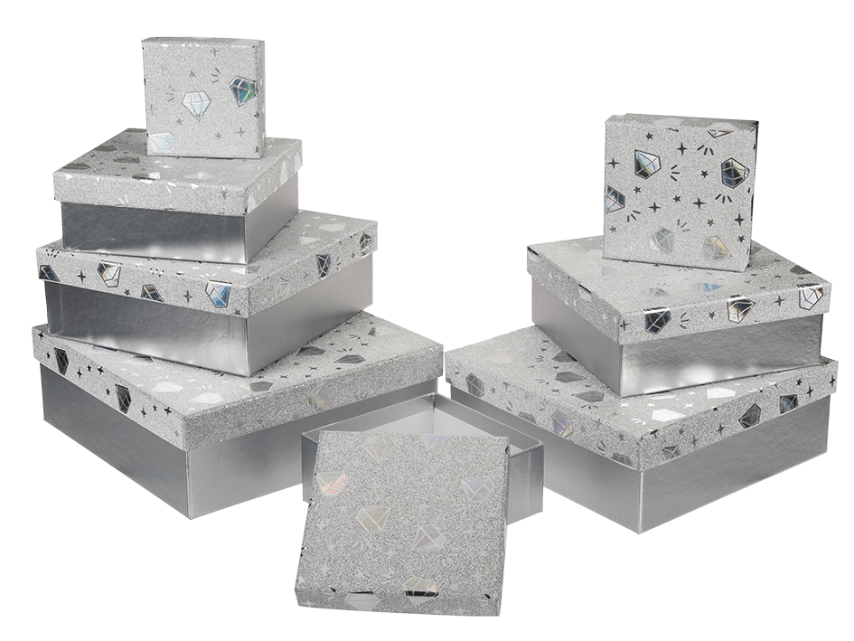Подарункова коробкасеребро"Діамант"буде актуальною не тільки на День народження, але й на будь-яке свято - весілля, Новий рік, річницю пам'ятних моментів.